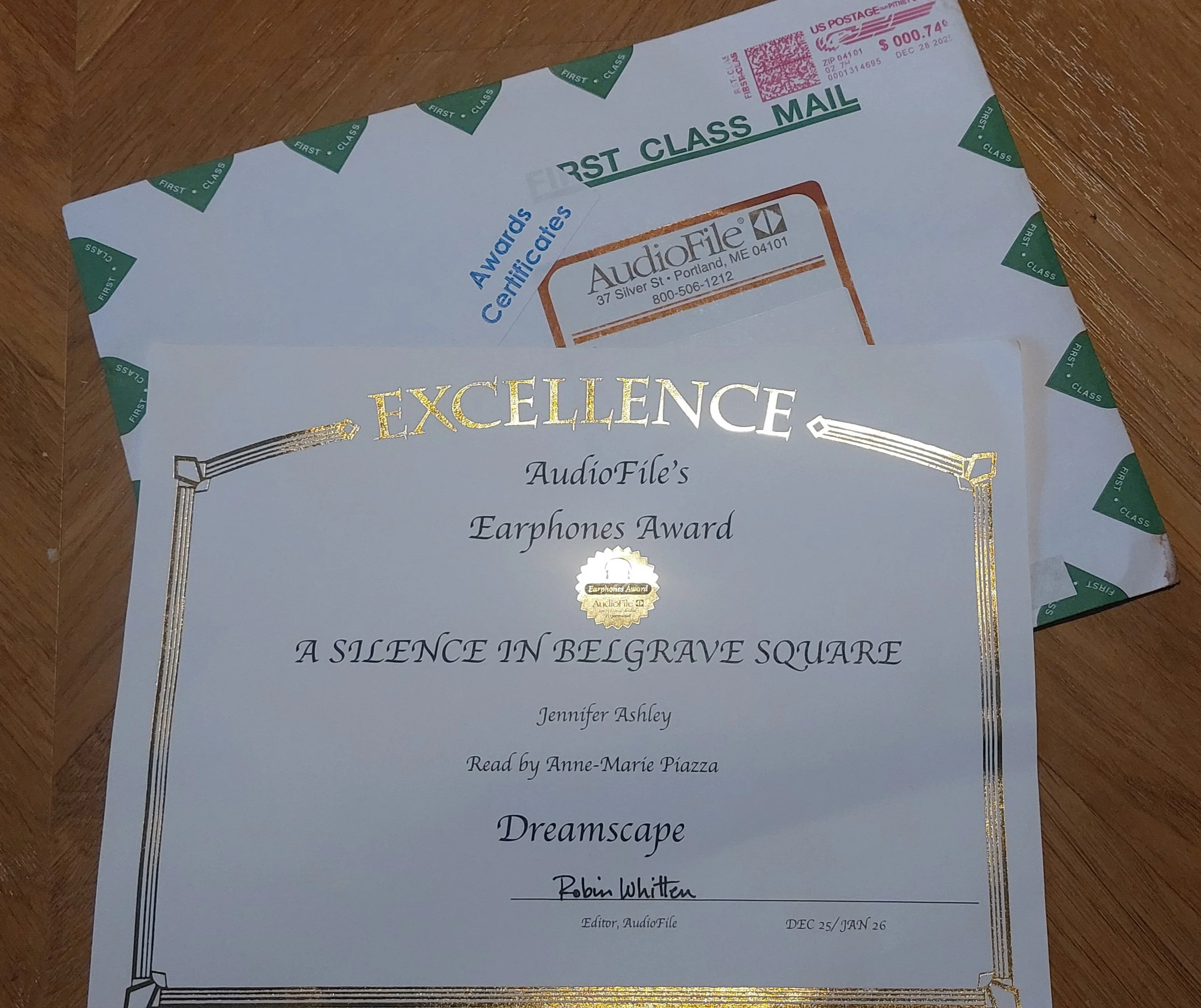 I have great joy in announcing that A Silence in Belgrave Square went on to win an Audiofile Earphone Award. Click the link to read the review.